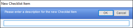 To build a checklist for your project, you will first need to add Checklist Items. To do this, click on the New button in the middle of this tab. This will open the Checklist Items window.